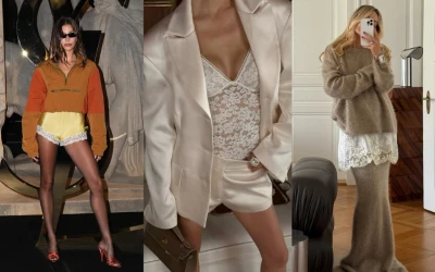 Aj v tomto prípade patrí medzi najvýraznejšie inšpirácie Hailey Bieber. Počas parížskeho týždňa módy zaujala kombináciou krajkových šortiek a športovej bundy, čím jasne ukázala, že negližé nemusí byť viazané len na večer alebo romantické príležitosti. Pri tomto type stylingu je dôležité dbať na proporcie. Ak zvolíte výraznejší spodný diel, vrch by mal byť voľnejší a jednoduchší.