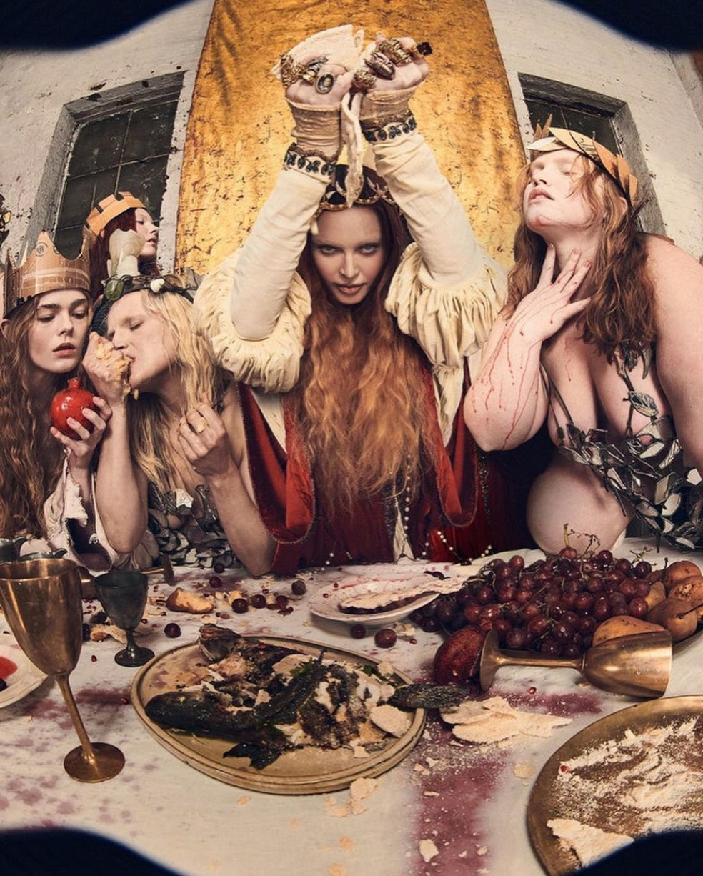 Časopis tiež uverejnil reprodukovanú scénu z Poslednej večere, v ktorej známa speváčka vstúpila do úlohy Ježiša stojaceho na prestretom stole s jej vernými, sporo odetými nasledovníčkami, ktoré jej padajú k nohám. Pre portrét Poslednej večere mala speváčka oblečené krémové plisované šaty pod jasne červenou róbou.