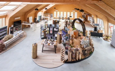 V srdci haly vznikol symbolický „wellbeing ostrov“ – živé centrum priestoru, ktoré slúži ako miesto oddychu, znovunapojenia a zmyslového vnímania prírodného rytmu. Showroom tak nie je len miestom predaja, ale aj priestorom pre zážitok – návštevníci tu vnímajú hodnoty značiek všetkými zmyslami: vôňou levandule, dotykom prírodných materiálov, hrou svetla aj pocitom pokoja a otvorenosti.