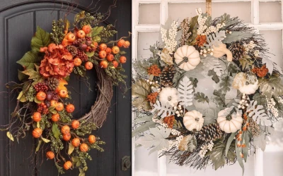 Jesenné vence majú mnoho podôb – od rustikálnych s prírodnými plodmi až po moderné minimalistické kúsky so zlatými akcentmi. Fantázii sa medze nekladú a každý veniec si môžete prispôsobiť svojmu štýlu. Pozrite si inšpirácie nižšie a vyberte si tú, ktorá najviac doladí váš domov.