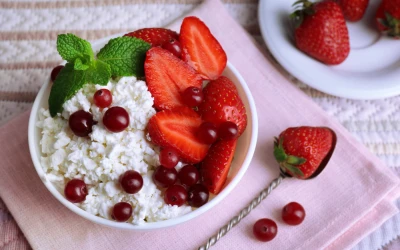 - Zdroj proteínu: grécky jogurt, skyr, cottage cheese, tofu, tempeh, strukoviny