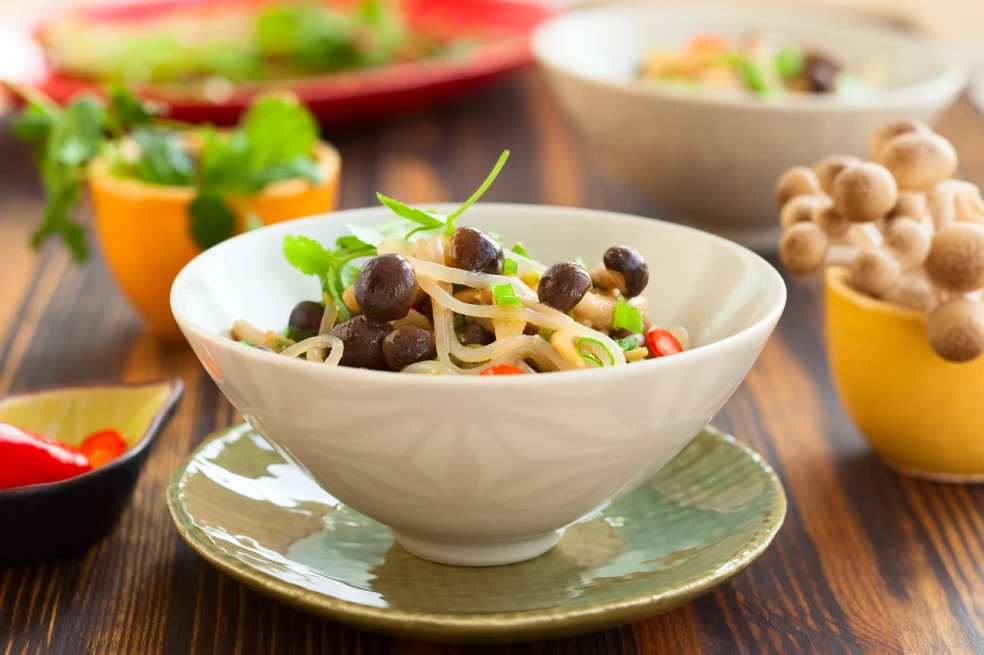 Ázijské rezance z morčacím mäsom a hubami shimeji