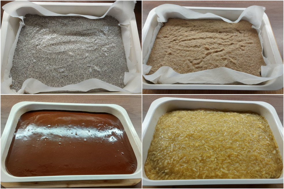 Príprava každého koláčika má svoju postupnosť. A v tomto prípade je potrebné začať korpusom. Oddelíme si bielka od žĺtkov a bielka vyšľaháme na tuhý sneh s polovicou cukru. V extra miske zase vymiešame žĺtka s druhou polovicou cukru. Pomletý mak zmiešame s práškom do pečiva a následne zľahka spojíme všetky zmesi. To znamená, že sneh pridáme do žĺtkovej zmesi a postupne vmiešame aj mak rozmiešaný s práškom do pečiva. Vytvorenú zmes na korpus prelejeme na plech vystlaný papierom na pečenie (hlboký plech) a pečieme pri teplote 190 °C približne 25 minút. Po upečení korpus vyberieme z plechu a stiahneme z neho papier na pečenie.