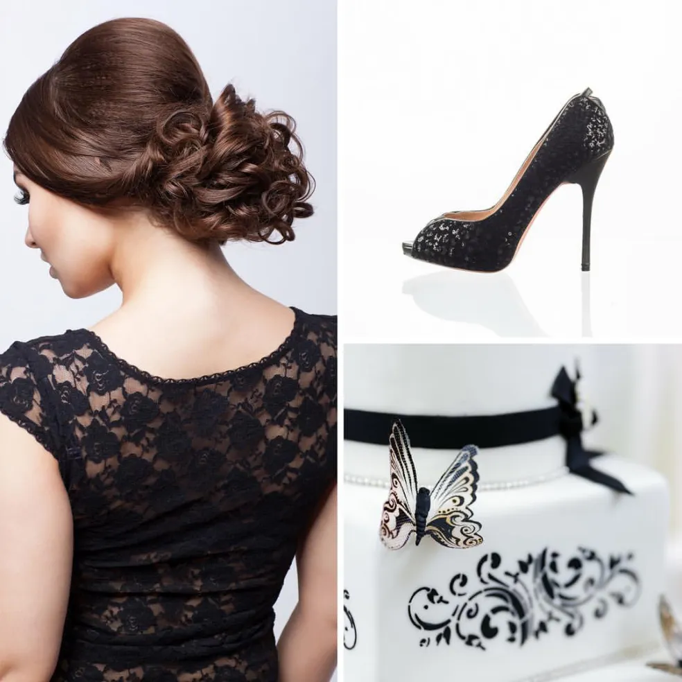 Biele svadobné šaty môžu byť napríklad dozdobené jemnou čiernou čipkou. Taká istá čipka môže zároveň tvoriť aj základný prvok vo výzdobe na stoloch. Nebojte sa experimentovať a vyskúšajte čosi nové aj vy! Instagram / @elovenkova